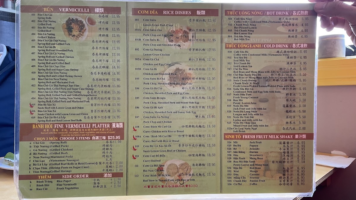 Beyond the food, the menu includes authentic drinks like Iced Vietnamese Coffee, perfect for a calm break or a complement to your meal. Whether it’s a weekday lunch or a weekend dinner, the dishes here offer familiarity and depth, inviting guests to savor the balance of fresh herbs, tender meats, and expertly seasoned broths.
